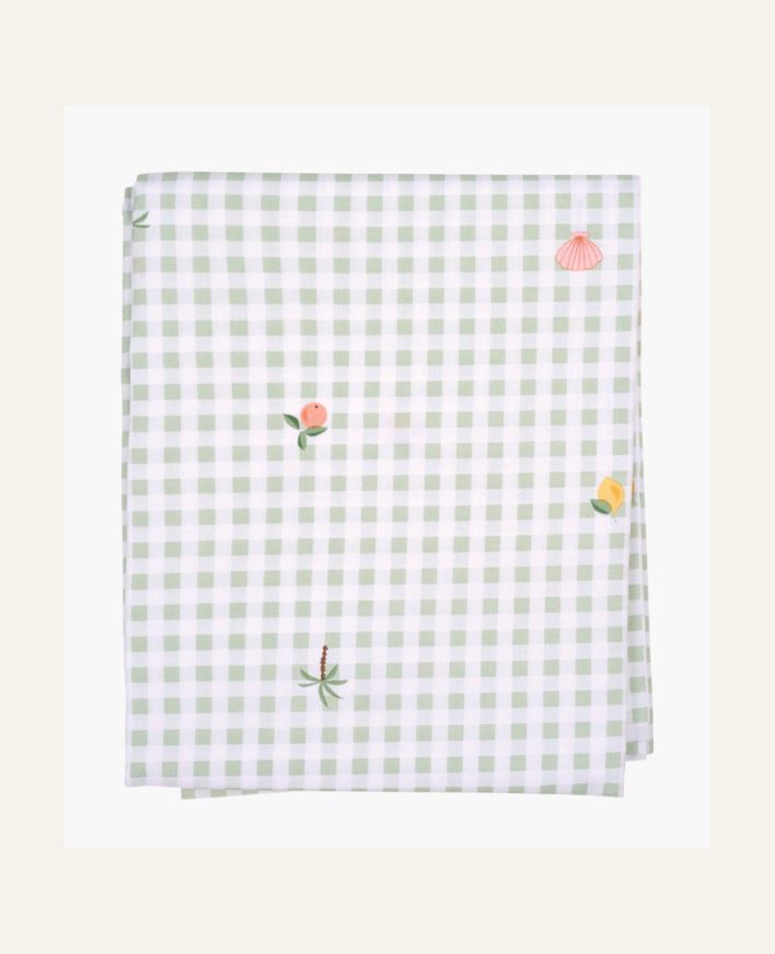 Elegant belagt bomullsduk i grønn med rutete mønster, tørkes enkelt av med fuktig klut.