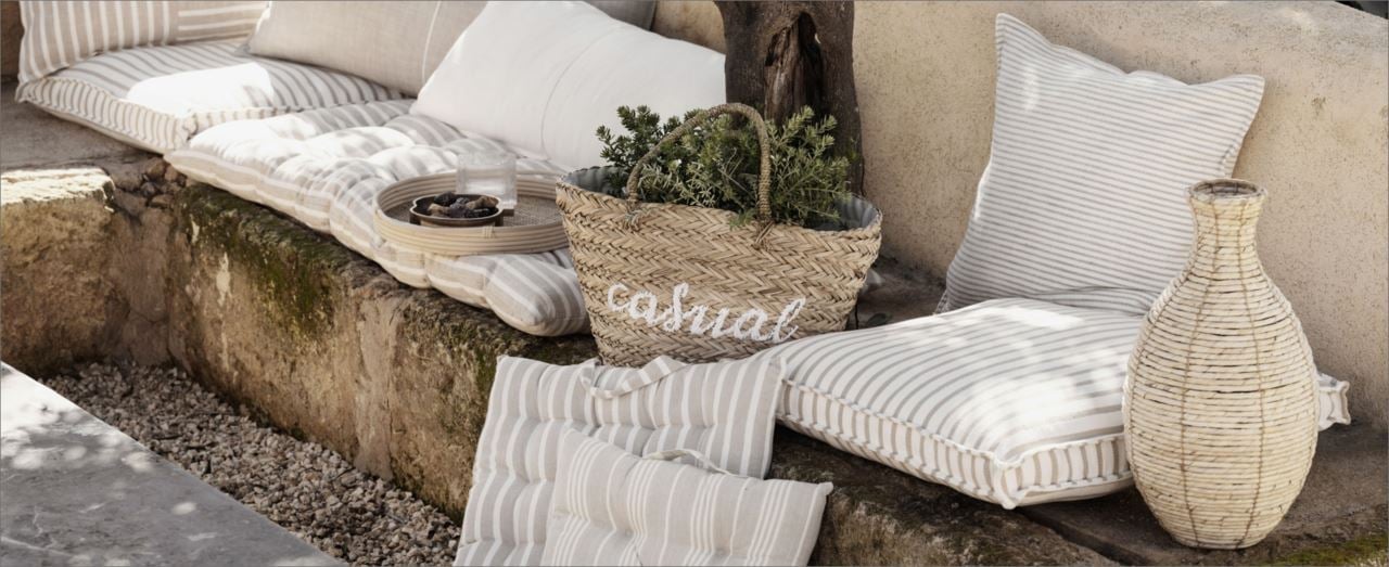 Kombiner gjerne sitteputer i dine favorittfarger og -mønstre med pynteputer i forskjellige farger. Ikke vær redd for å blande ulike farger, striper og mønstre for et personlig uttrykk. Massevis av puter gjør dessuten uteplassen ekstra lun og hyggelig - husk også noen fine lykter og pledd til kjølige sommerkvelder.