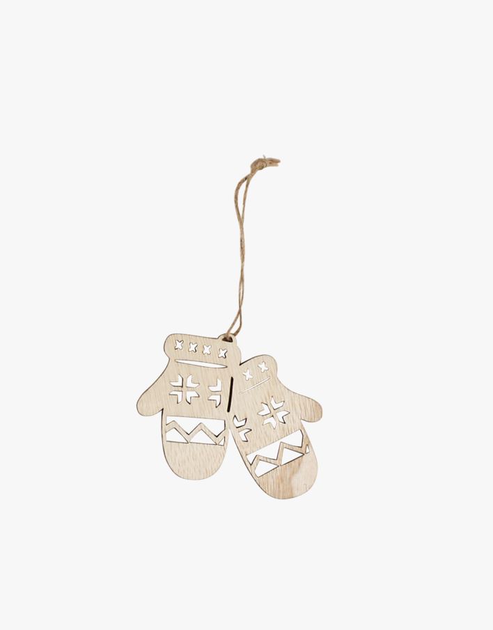 Søt pynt laget i tre. Kommer med en liten snor, så den enkelt kan festes på julegaven, gaveposen eller som pynt på kalenderposer til advents-/julekalenderen.