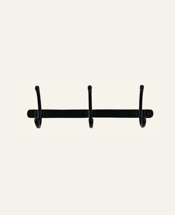 Solid knaggrekke av aluminium. Det er 3 knagger på knaggrekken.