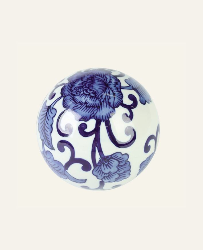 Dekorkule i porselen med delikat mønster som gir et tidløst og stilrent uttrykk. Passer som dekor på bord, hylle eller i vitrineskap, alene eller kombinert med andre elementer for et helhetlig interiør.