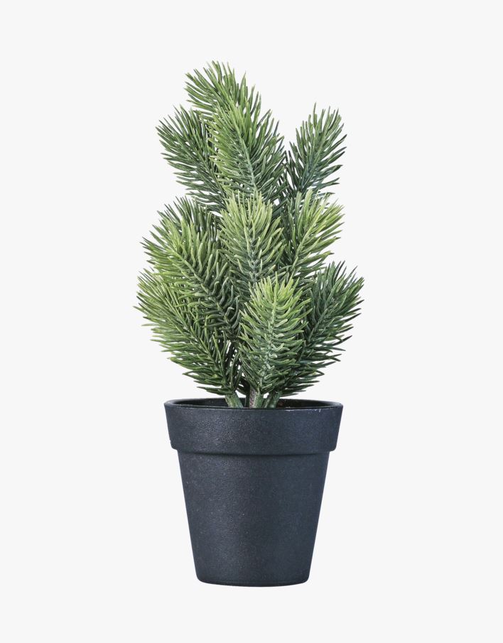 Kunstig lite juletre med svart potte. Passer fint som bord- og hyllepynt.