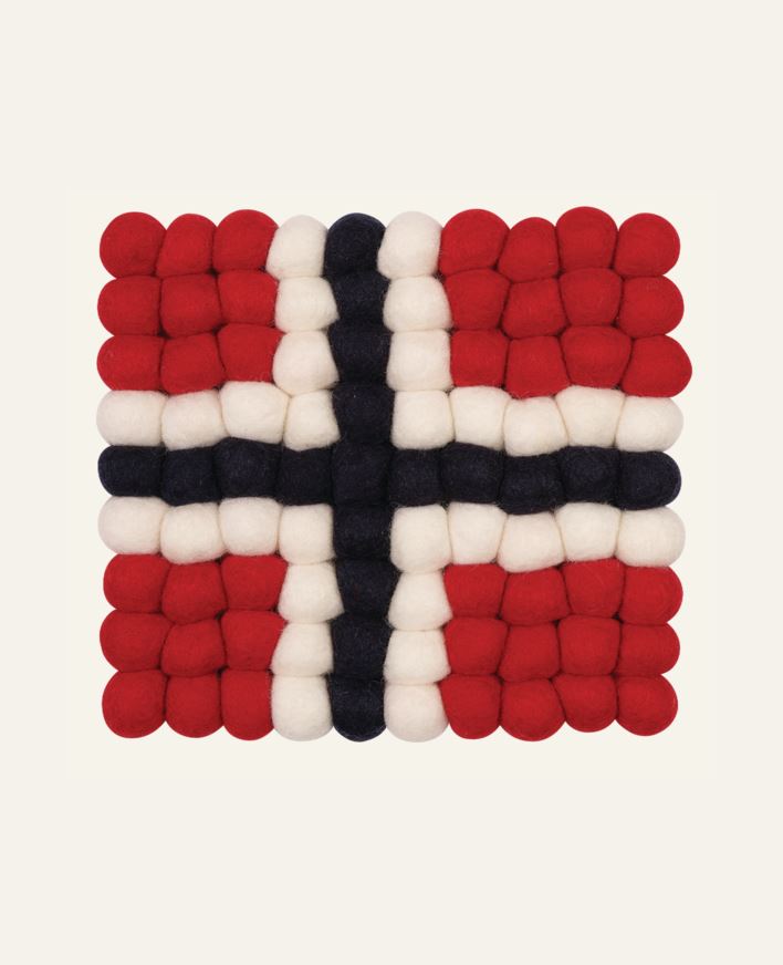 Gryteunderlag bestående av små kuler av 100% ull. Perfekt til 17.mai.