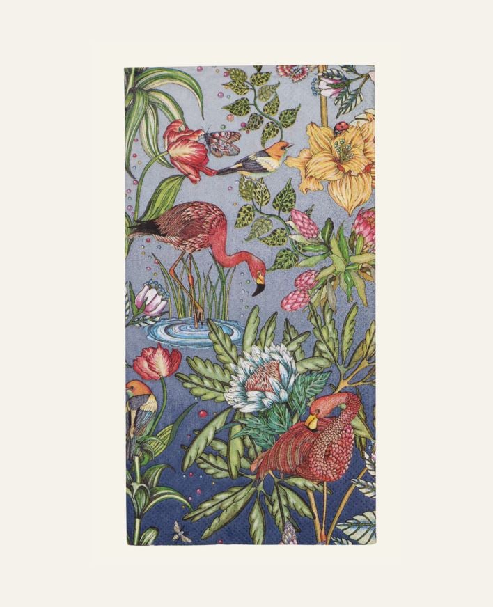 Papirservietter med tropisk mønster som skaper en frisk og dekorativ stemning ved bordet. Laget av 100 % FSC-sertifisert og Svanemerket papir i pakke med 16 stk. Miks og match med stearinlys eller duker for et gjennomført uttrykk.