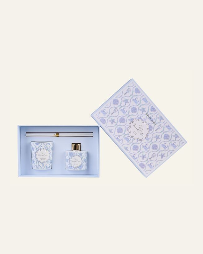 Sense Sea duftsett sprer en ren og frisk aroma av Sea Island Cotton – en duft som minner om myk bomull i havbris. Skaper en luftig og avslappende stemning i hjemmet.