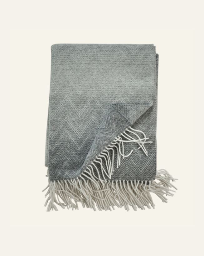 Lekkert pledd i delikate farger i myk og deilig merinoull. Denne ullen kommer fra merinosauen, som er spesielt egnet for ullproduksjon. Pleddet inneholder også en liten del kashmir, noe som gjør dette pleddet ekstra mykt og behagelig. Passer like fin...