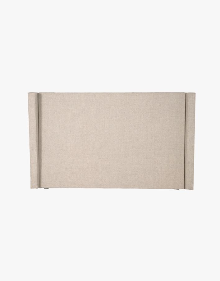 Sengegavl i slitesterkt møbeltekstil med konstruksjon av heltre furu og HDF.